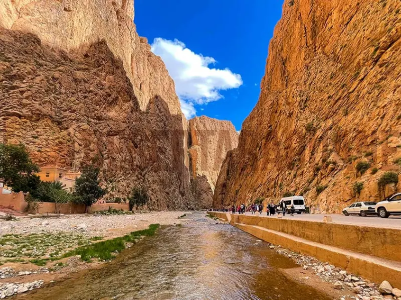 Optional sunrise camel trek over the dunes. Drive to Todra Gorge for hiking and photos. Continue to the Dades Valley, known as the “Valley of a Thousand Kasbahs.” Overnight in a riad/hotel in Dades or nearby.