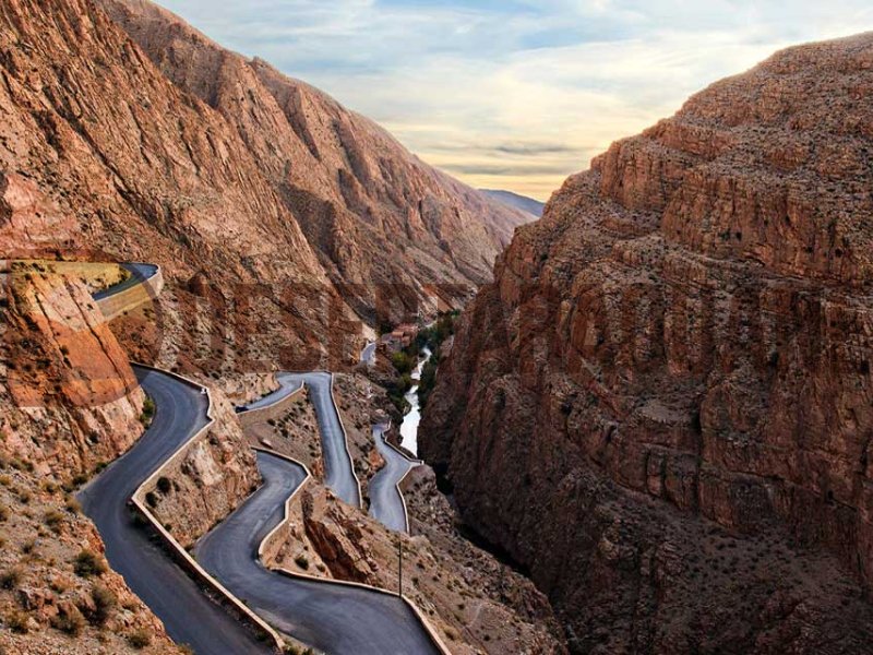 - Depart Marrakech early morning via the Tizi n’ Tichka pass in the High Atlas (approx 2-3 h from Marrakech to pass). - Stop at photo points, small villages en route. - Visit the UNESCO site of Kasbah Aït Ben Haddou; time for guided walk, lunch nearby. - Continue to Ouarzazate; visit Kasbah Taourirt and/or the movie studios. - Drive to the Rose Valley / Skoura (if time) and then onward to the Dades Gorges. - Arrive at hotel in Dades, enjoy sunset view over the gorges. Dinner and overnight.